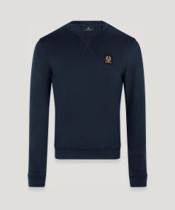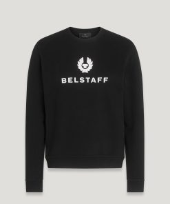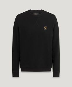Men’s Cotton Fleece Belstaff Signature Crewneck Sweatshirt In Black / Off White | Black & Offwhite