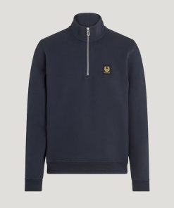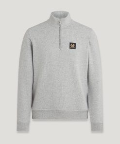 Men’s Cotton Fleece Belstaff Quarter Zip Sweatshirt In Old Silver Heather | Oldsilverheather