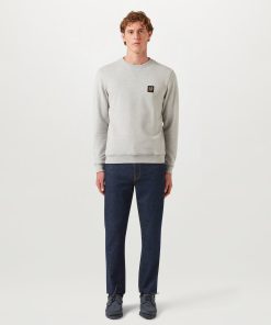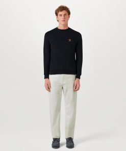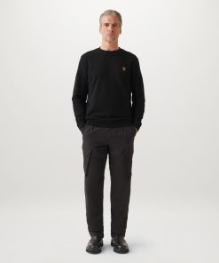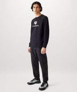Men’s Cotton Fleece Belstaff Signature Crewneck Sweatshirt In Black / Off White | Black & Offwhite