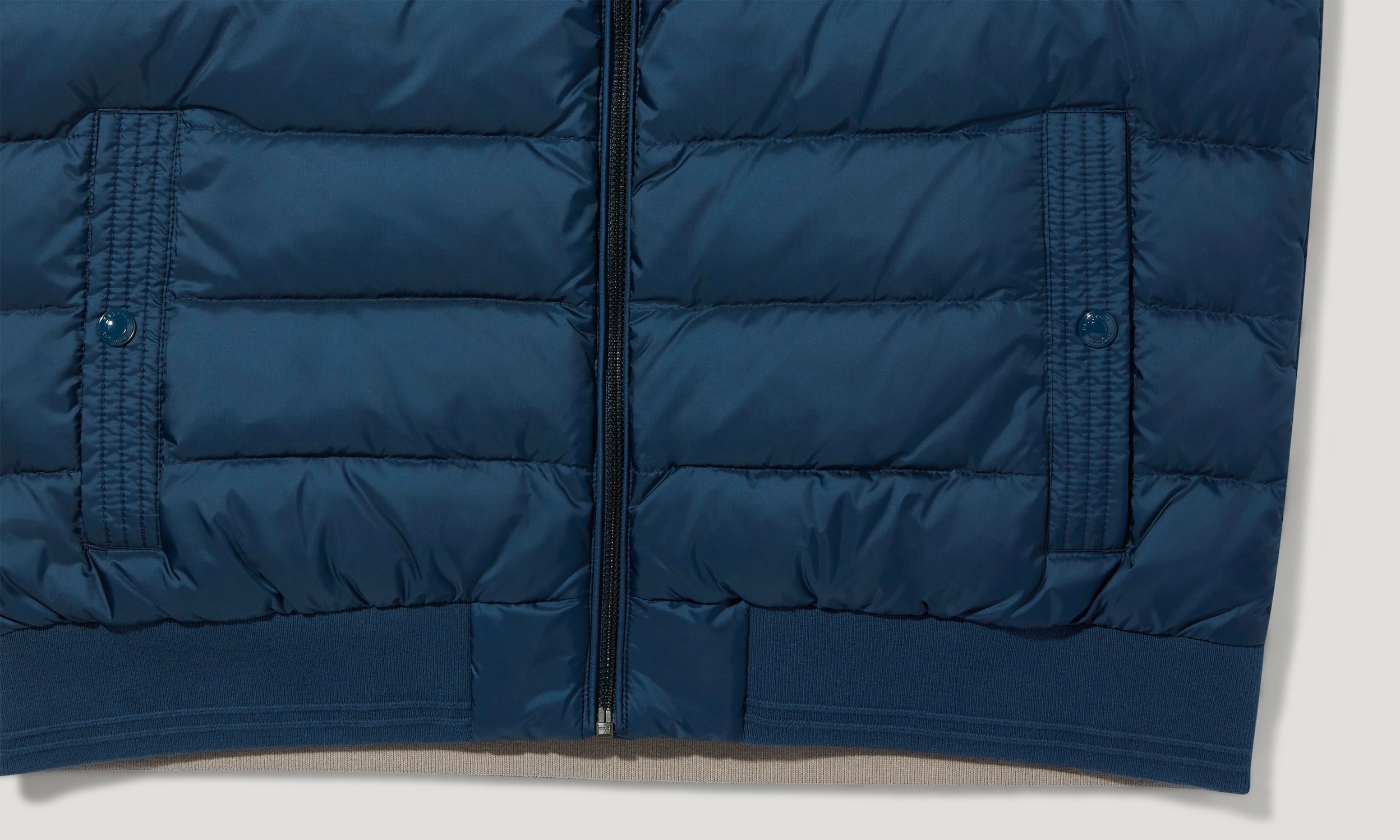 Shell: 100% Polyamide Filling: 90% Wwhite duck down 10% White duck feathers Lining: 100% Polyamide Rib: 90% Cotton 8% Polyester 2% Elastane