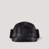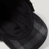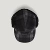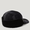 Fleece fold down ear warmer panels with press stud buttons so the brim can be folded up at the sides