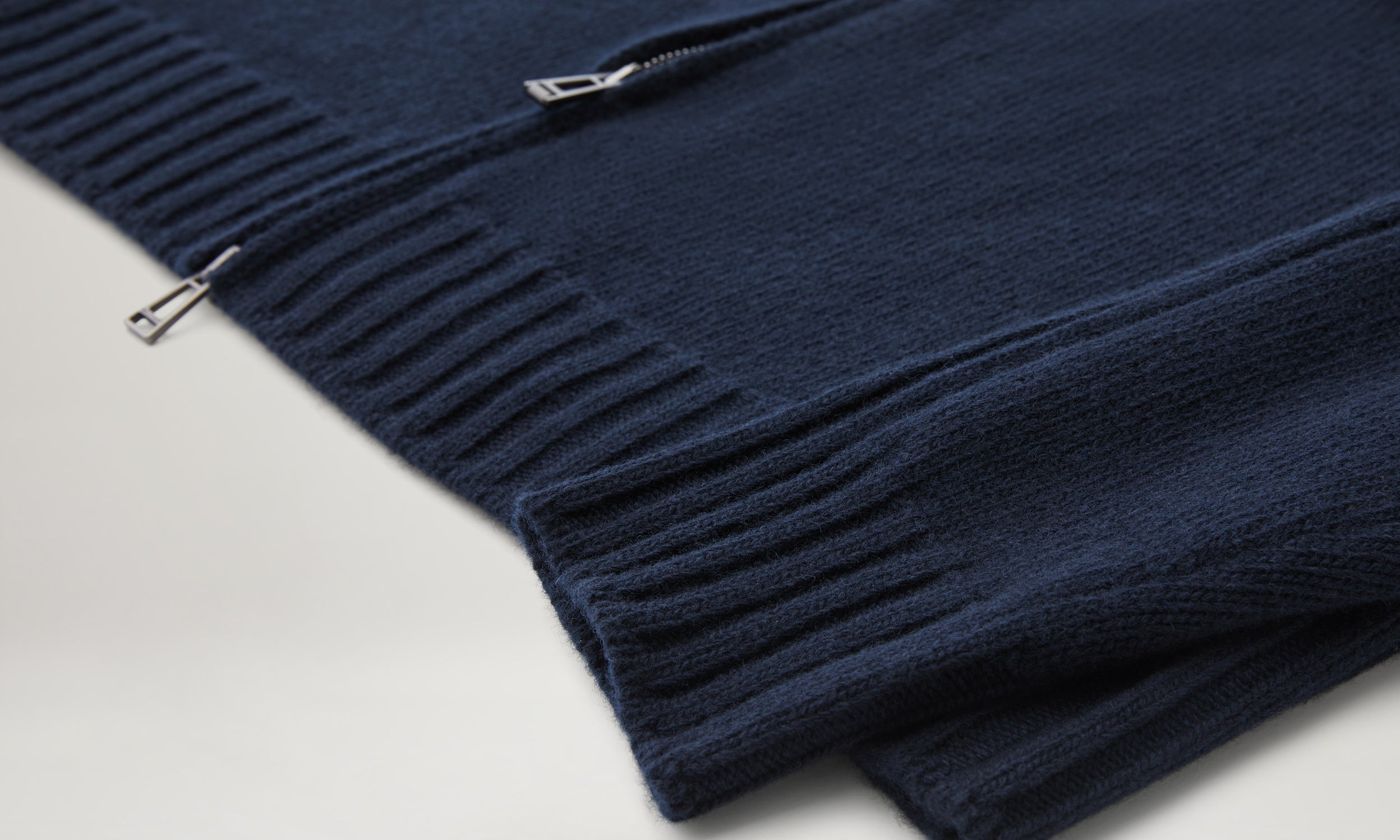 Woven with a ribbed knit and ribbed collars and hem
