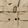 Branded dark brown horn buttons and leather covered buckle, functional storm flap detail, dual entry pockets and functional chest pocket, adjustable buttoned cuffs