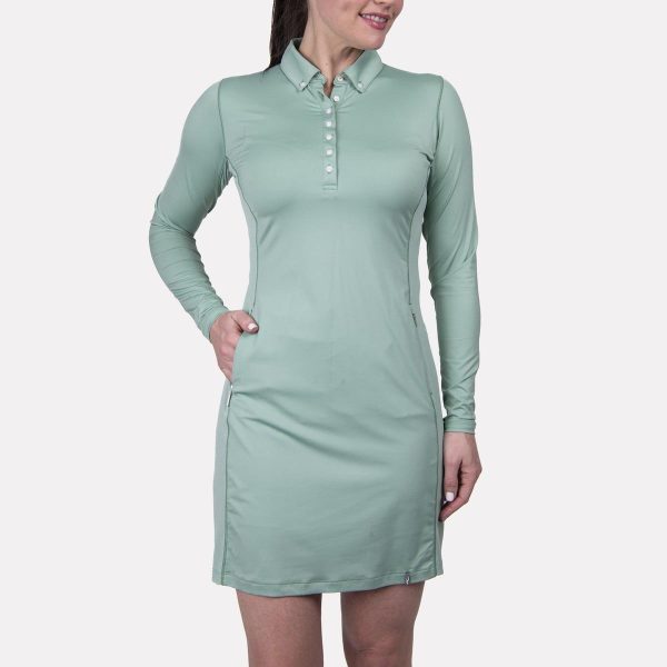 Enjoy full range of motion in all parts of your swing in this long-sleeve golf dress. Classic polo styling is complemented with a variety of technical features, including preshaped sleeves with a Y-tech cut for mobility, body mapping for optimal freedom of movement, and mesh panels under the arms for breathability. The lightweight and stretchable fabric is breathable and features a cooling treatment and UV protection making it ideal for hot days. Finishing touches include concealed pockets that don’t add bulk and a pair of modesty shorts so you can move around the course with confidence.